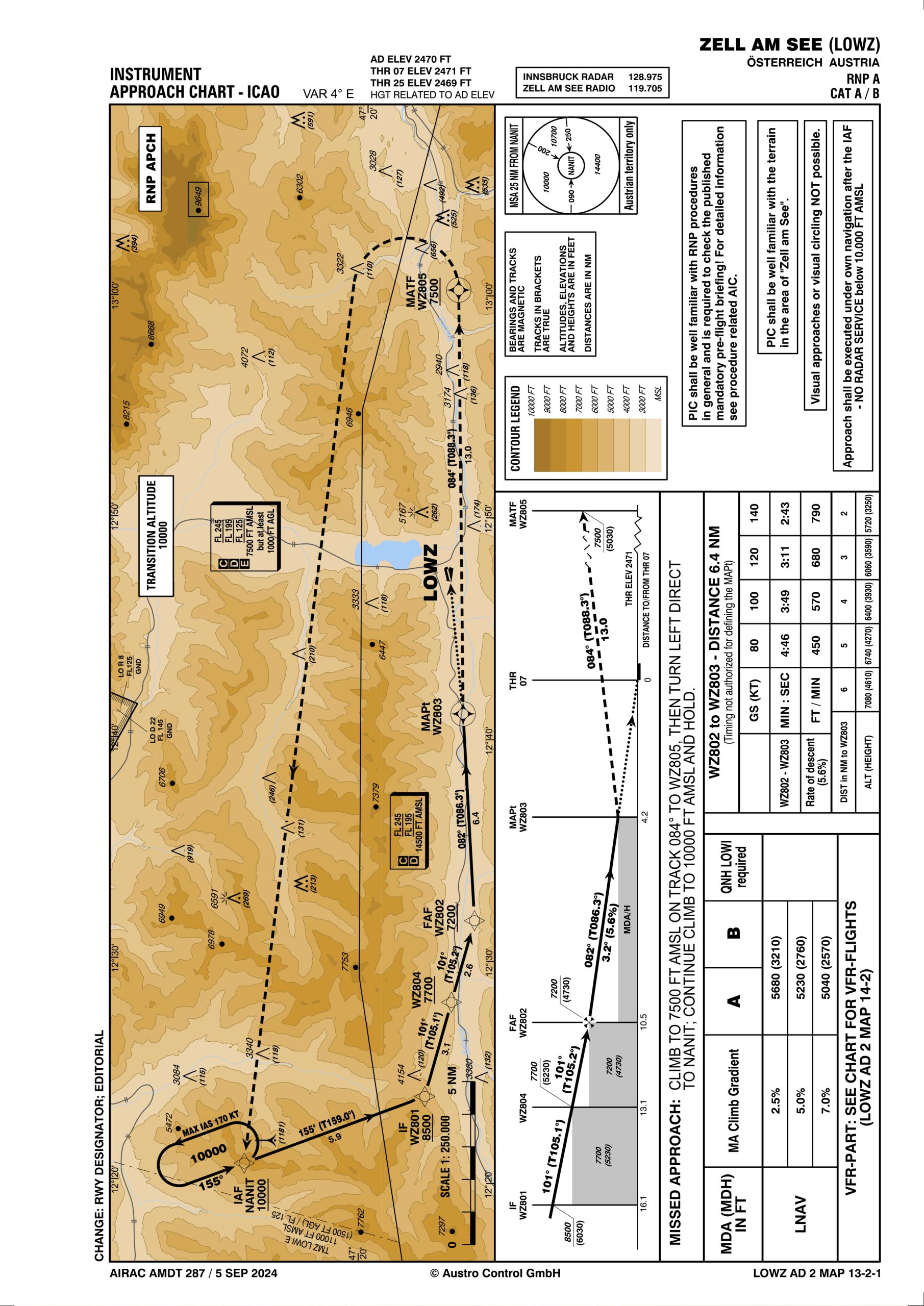 Anflugverfahren zum Flugplatz Zell am See