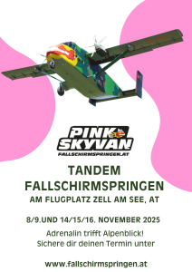 News 6. Oktober 2025 Abfliegen und Ziellanden der Zeller Piloten Pink Skyvan Fallschirmspringen